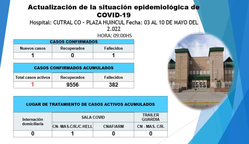 En cuanto al paciente que transita la enfermedad se encuentra internado en sala covid del hospital. Desde que comenzó la pandemia son 9556 casos recuperados y 382 fallecidos en la comarca.
