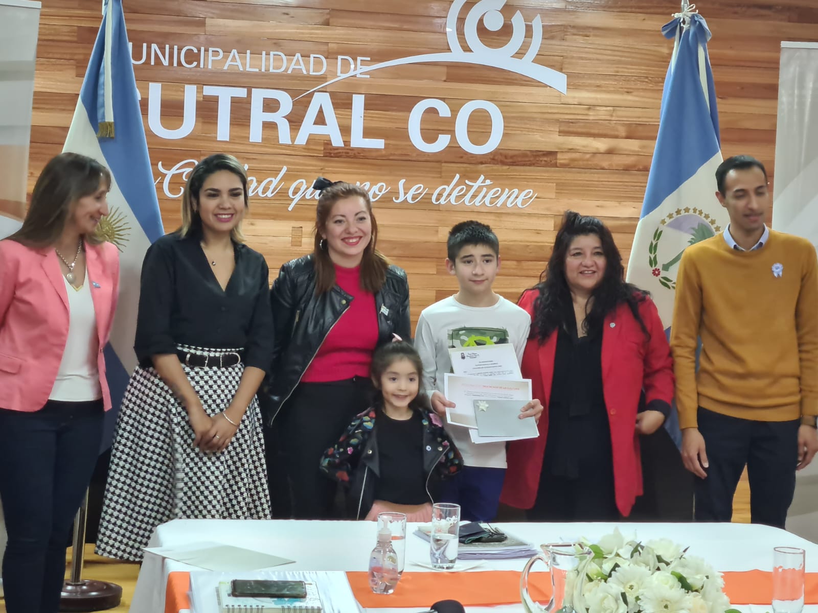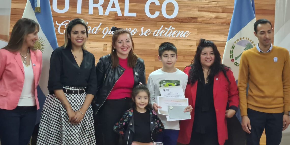 Valentino, que tiene 13 años recibió hoy un reconocimiento en el Concejo Deliberante de Cutral Co. Se trata de creador y ganador para representar a la provincia en la categoría “videominuto” para los Juegos Nacionales Evita y que se llamó “Todos somos uno”.