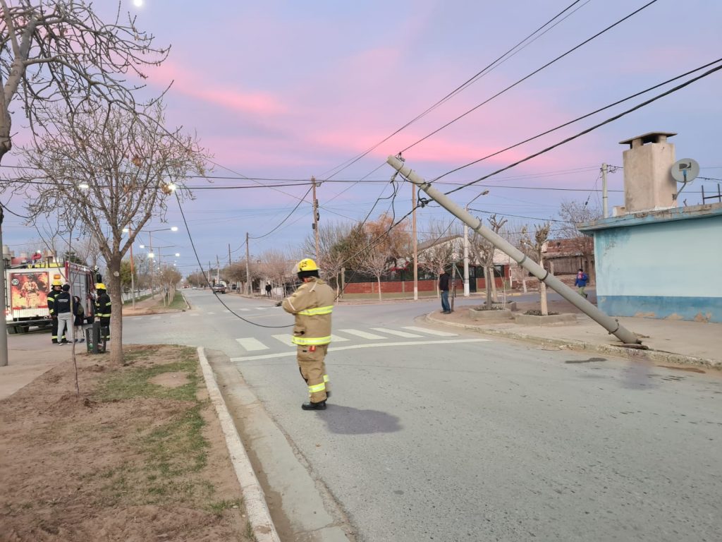 Esta tarde, una persona que conducía un camión con la caja volcadora enganchó los cables del tendido eléctrico y derribó una línea de 100 metros en avenida Schreiber y Paganini. La maniobra rompió dos columnas de hormigón y un poste.