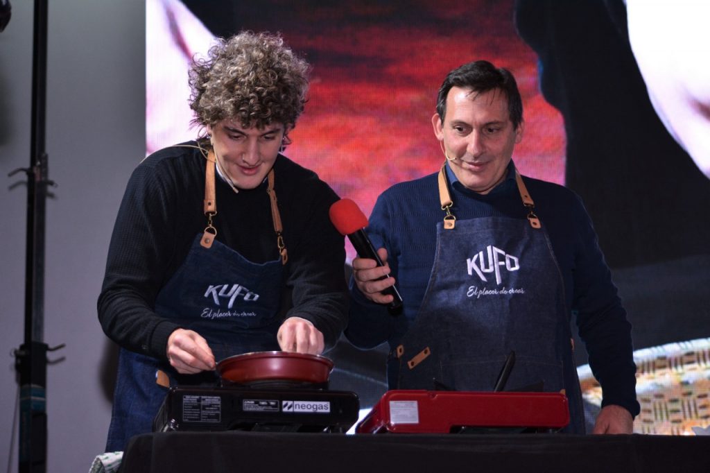 El periodista Paulo Kablan y su hijo Facundo se lucieron en la tarde de ayer ante 200 personas que acercaron al Cine Rex para disfrutar de “Historias en la cocina”.