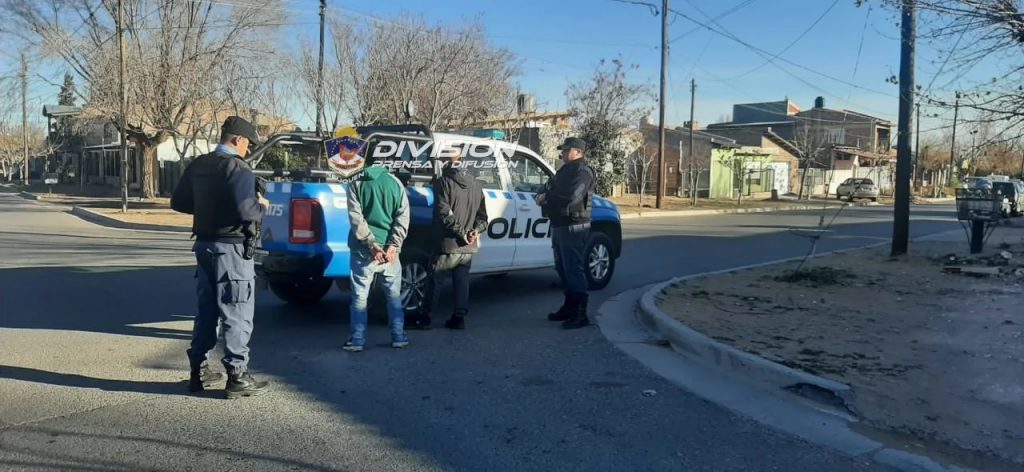 Esta mañana se produjo la demora de dos hombres que estaban sentados en el cordón de un comercio en Perito Moreno y Fortín Primero de Mayo, en Cutral Co. Ante el llamado de una persona que alertaba de su presencia, los uniformados acudieron, los identificaron y de ahí salió el pedido de captura vigente desde Neuquén y de Junín de los Andes.