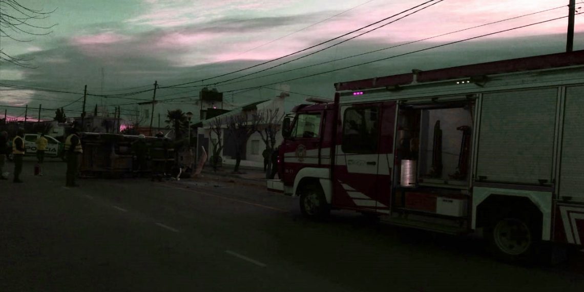 El conductor de una camioneta Toyota Hilux perdió el control del vehículo y chocó con otra camioneta estacionada lo que generó que se tumbara sobre uno de los laterales.