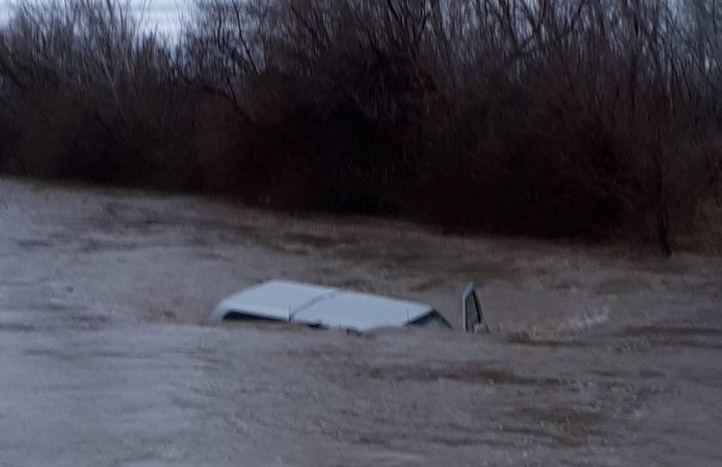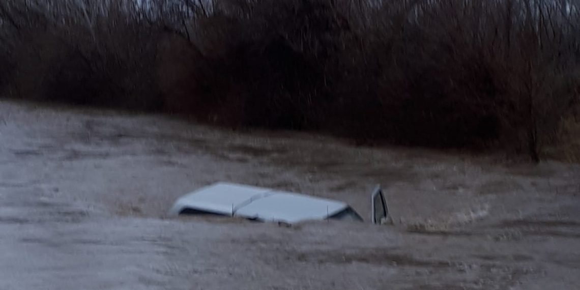 Al parecer el torrente repentino de agua fue el que originó la situación que tomó por sorpresa a quien guiaba la camioneta Ford Ranger. El caudal de agua tapó finalmente la totalidad del habitáculo.