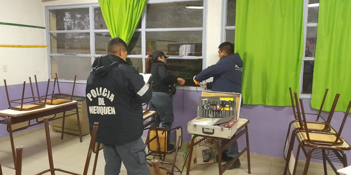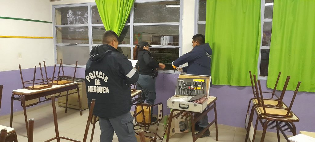 Personal policial se acercó para constatar el acto delictivo además de representantes de ATEN seccional Cutral Co Plaza Huincul. Según se informó se llevaron una máquina cortadora de fiambre y 20 litros de pintura.