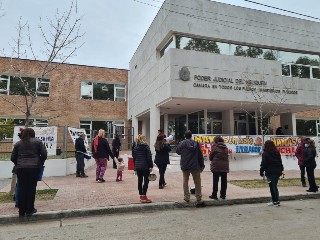 El pedido de modificación del juicio contra dos personas por el abuso sexual agravado de una víctima menor de edad motivó una protesta frente al edificio donde funciona la Oficina Judicial de Cutral Co, en JJ Valle, entre Chubut y Freire.