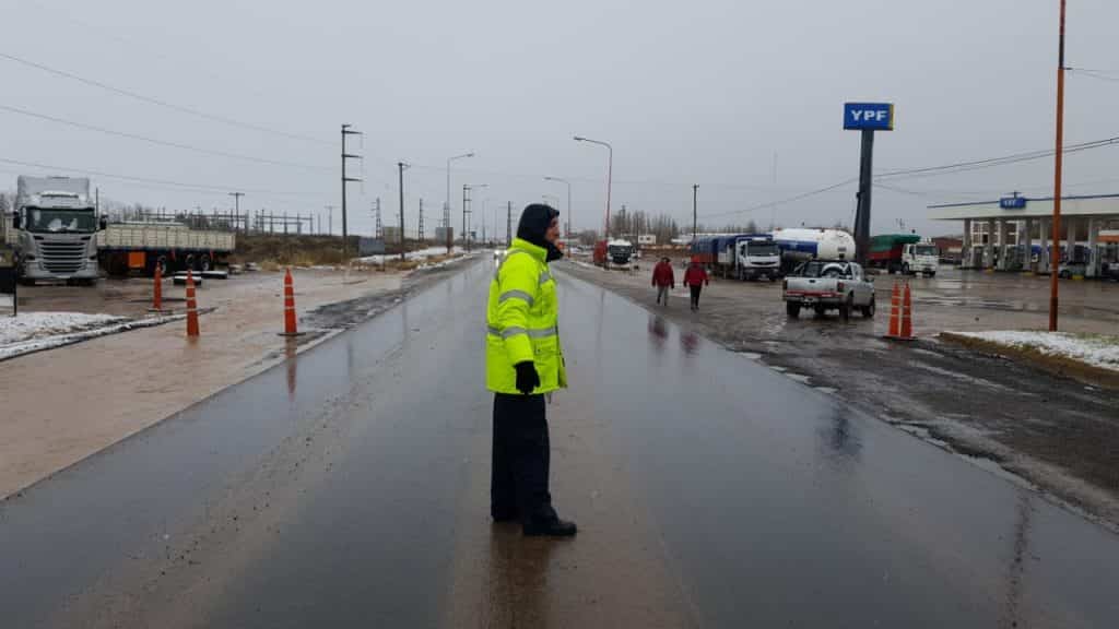 A esta hora continuaba la protesta que se inició hoy a las 5 de la madrugada. Los empleados que pertenecían a la cocina se mantienen con idéntica modalidad: cada una hora permiten el paso de 15 vehículos por mano. La excepción son las personas con turnos médicos o estudios en Neuquén.