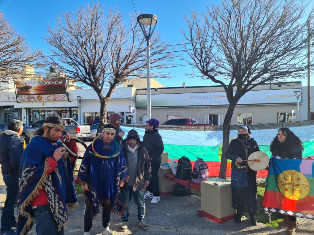 Hoy, los integrantes de la comunidad mapuche urbana Xem Kimvn se concentró en el bulevar frente al Concejo Deliberante de Cutral Co para visibilizar su pedido para que la ciudad sea intercultural.