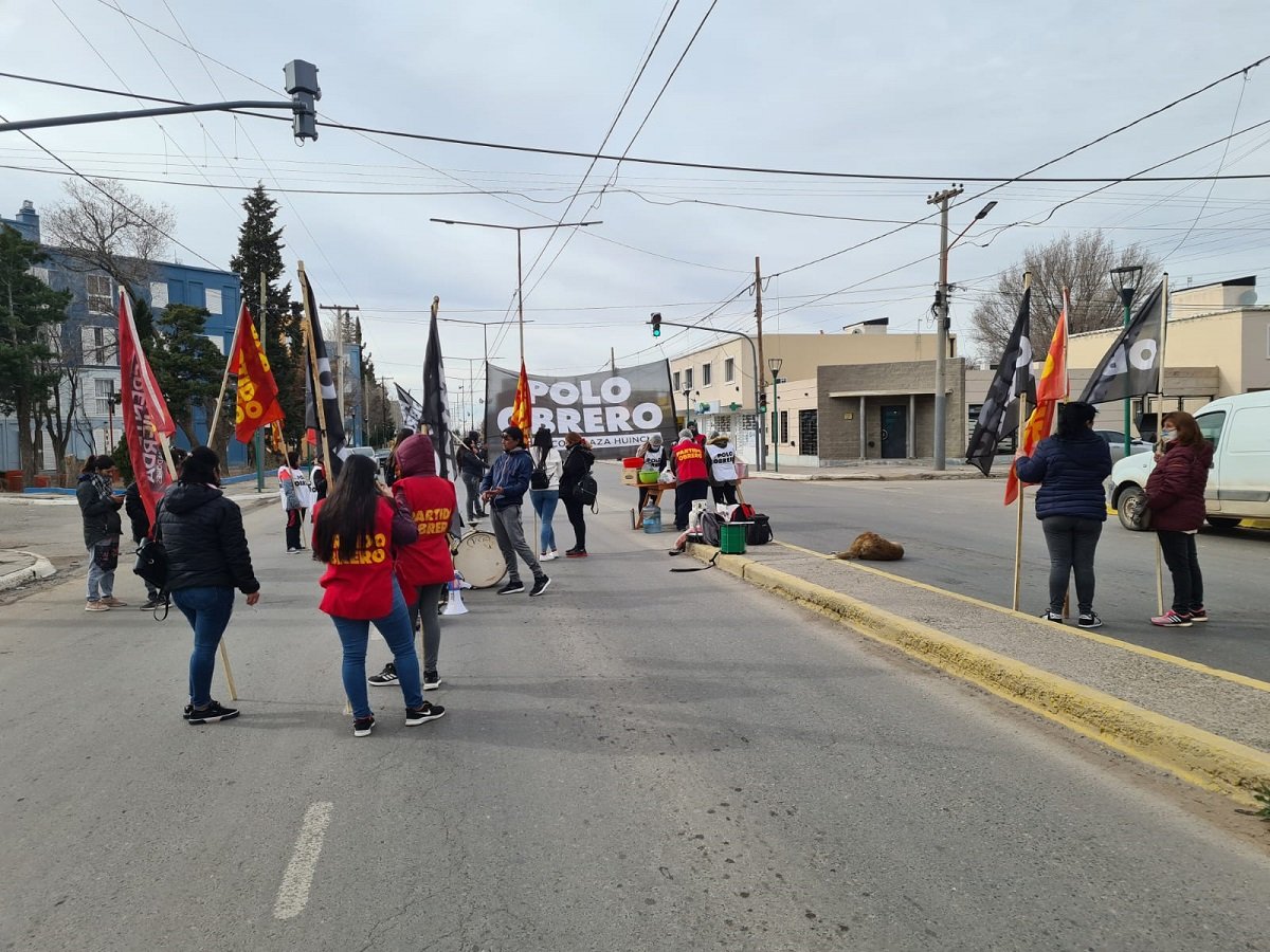 Desde esta mañana, integrantes del Polo Obrero se apostó frente al edificio municipal huinculense, sobre la ruta 22 e instalaron la mesa con los alimentos para realizar la elaboración de las viandas que habitualmente se preparan en el barrio Centenario. El paso por la ruta 22 se desvió por las calles laterales.