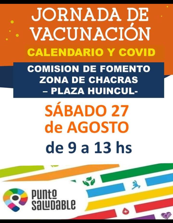 Este sábado desde las 9 hasta las 13, habrá campaña de vacunación tanto del calendario como de refuerzo de Covid-19. Será en la sede de la Asociación de Fomento Rural -AFR- de la zona de chacras de Plaza Huincul