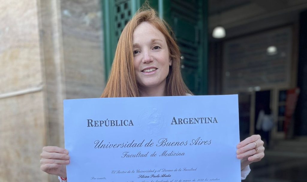 Familiares saludan a Silvina Paola Abadie quien se recibió de Licenciada Fonoadiologa de la Universidad de Buenos Aires.
