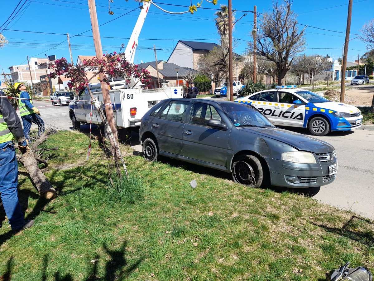 A la vez también debió ser convocada la grúa de la cooperativa Copelco para que pueda tomar intervención en el poste de alumbrado público.