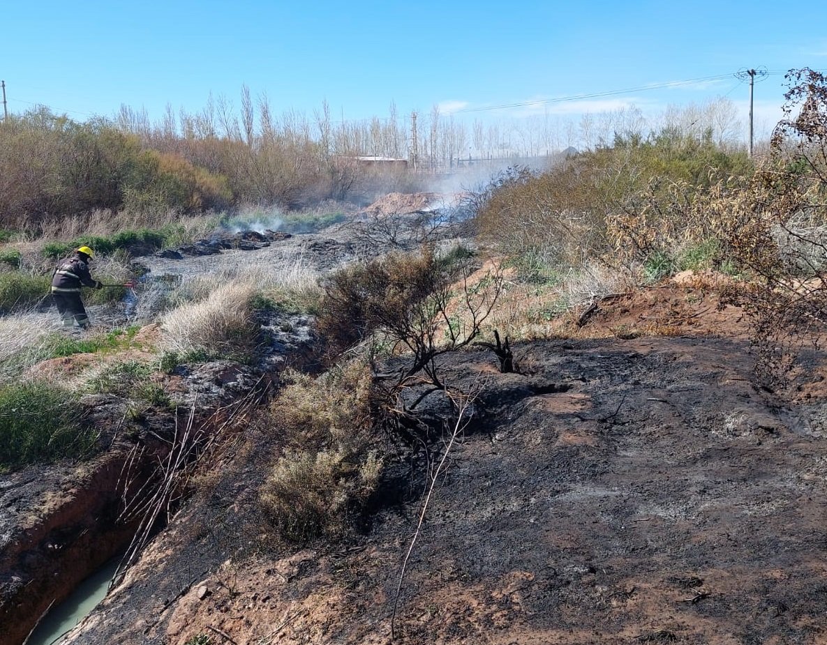 Esta tarde, se registró un incendio de pastizales en el canal colector de crecientes, a la altura de Plaza Huincul. Los bomberos voluntarios huinculenses acudieron al lugar para sofocar las llamas que se extendieron a lo largo de varios metros.