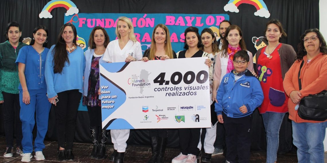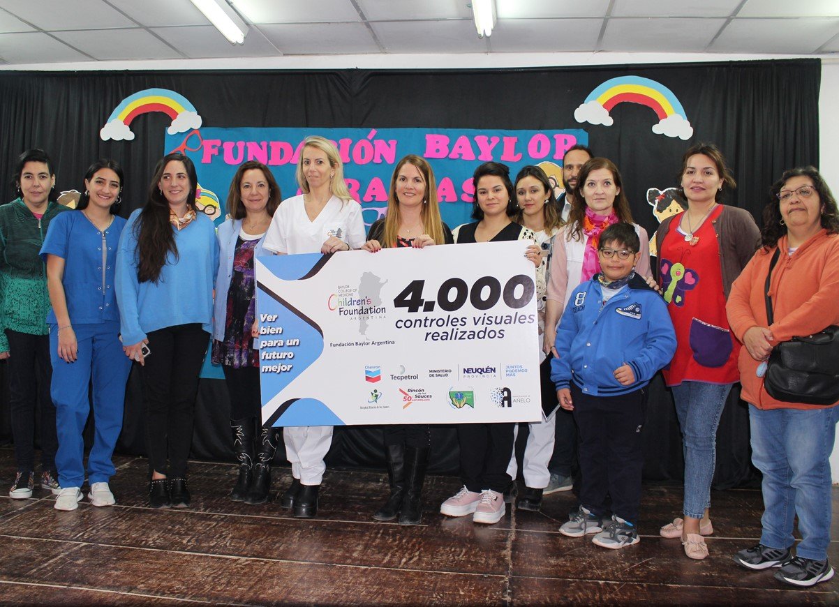 La Fundación Baylor Argentina superó los 4.000 controles visuales realizados a niños y niñas de Añelo, Rincón de los Sauces y el barrio Ciudad Industrial, en la ciudad de Neuquén. Hoy, durante la entrega de 65 nuevos lentes a alumnos y alumnas de la escuela 335 de Rincón de los Sauces, la Fundación -gracias al apoyo de Chevron y Tecpetrol y en articulación con el municipio, el hospital local y el Ministerio de Salud- compartió una foto simbólica para celebrar el alcance del programa de Salud Visual.