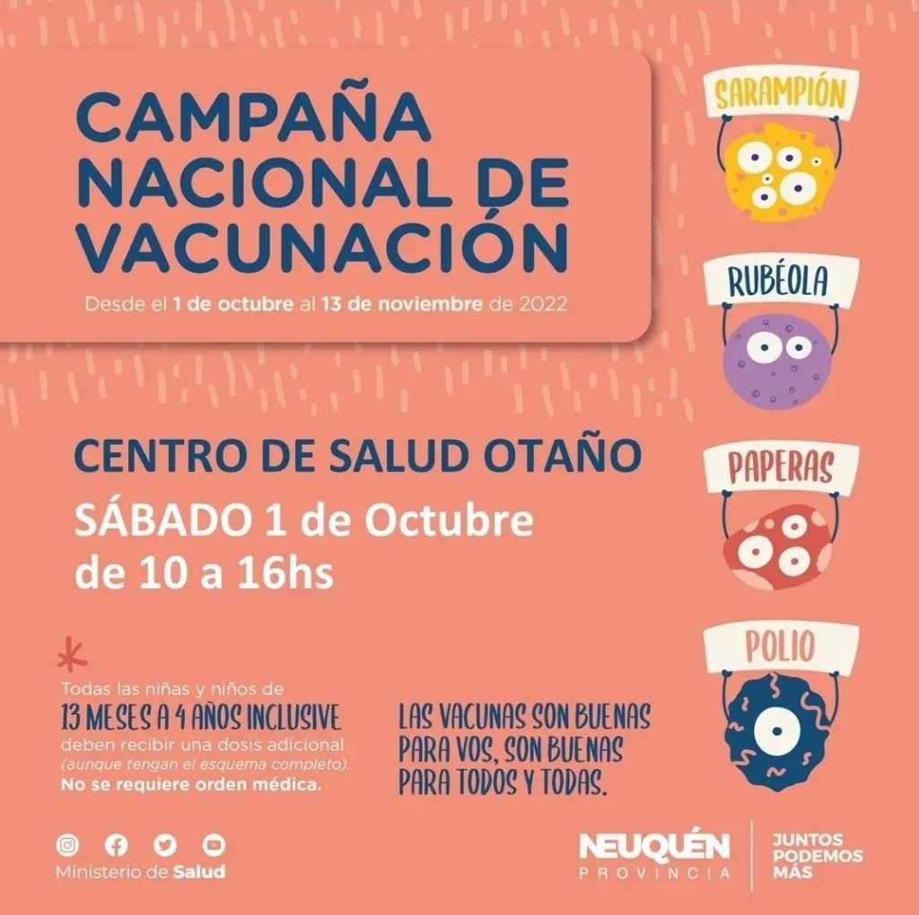Desde hoy 1º de octubre y hasta el domingo 13 de noviembre se llevará adelante la campaña de vacunación contra Sarampión, Rubéola, Polio y Paperas.