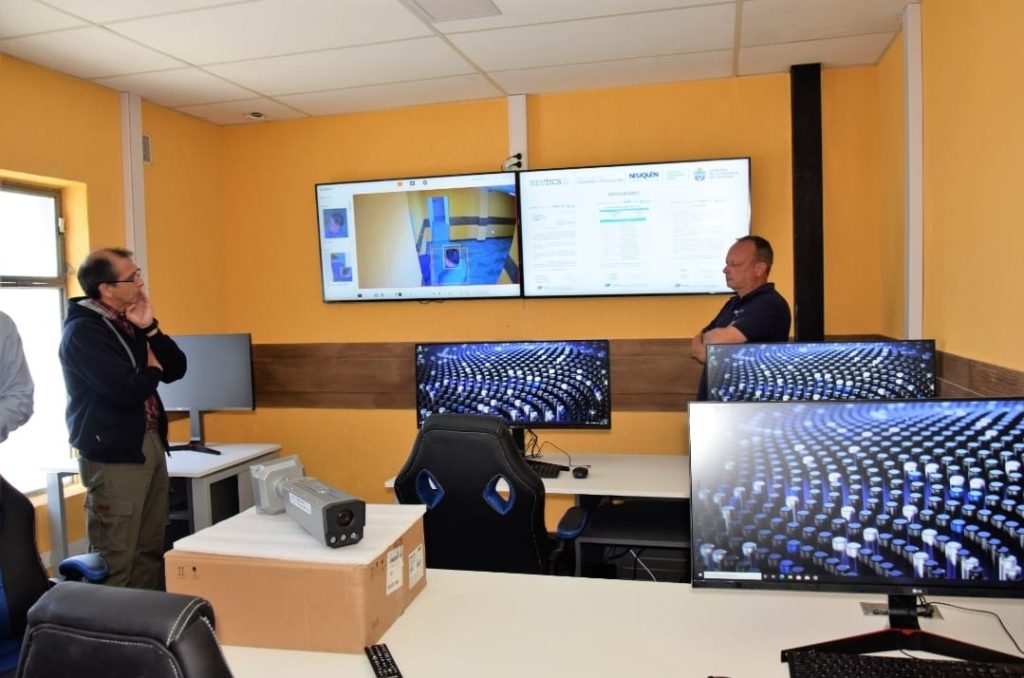 El intendente de Plaza Huincul, Gustavo Suárez, encabezó el recorrido de la obra que se ejecuta en el Centro de Monitoreo junto a personal de la empresa que está encargada del soporte técnico, Neutics.