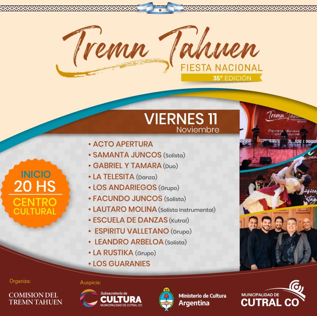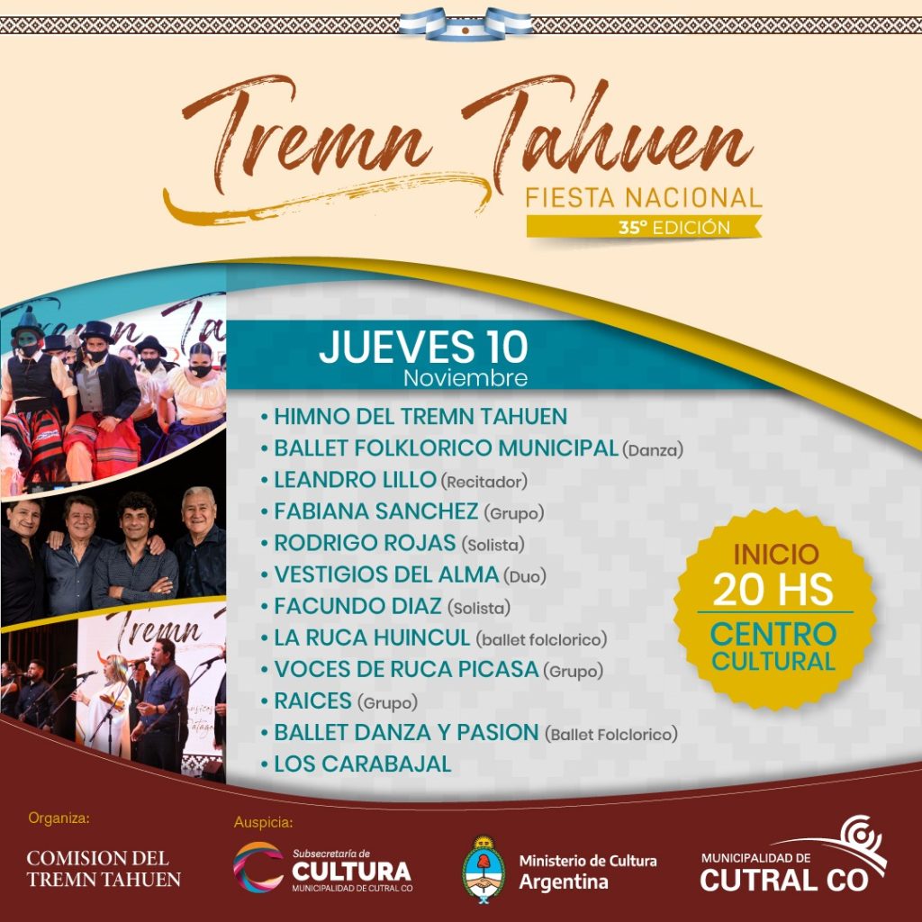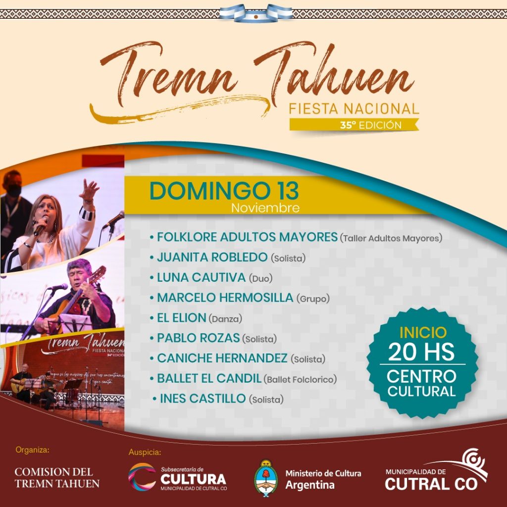 El Tremn Tahuen que fue declarada fiesta nacional y que busca reunir a las y los artistas del género folklórico desde las agrupaciones con más amplia trayectoria como las que recién empiezan a transitar la música. El encuentro empezará el jueves 10 y se extenderá hasta el domingo 13, con entrada libre y gratuita en el Centro Cultural del Parque de la Ciudad.