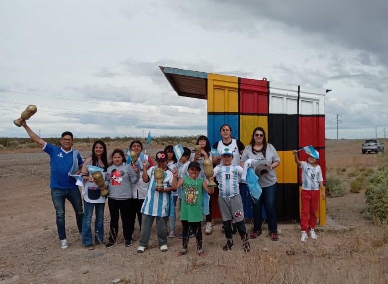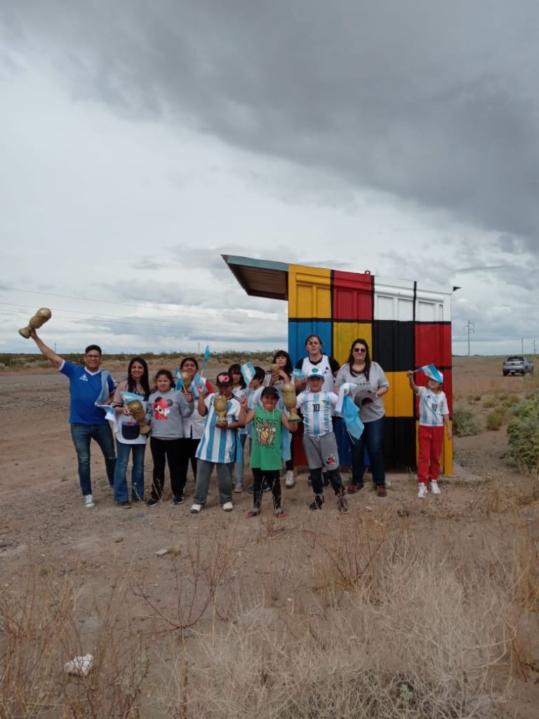 Como parte de las propuestas, realizaron el último día una salida con réplicas de la copa del mundial de fútbol que elaboraron las y los alumnos con el material reciclado, según explicó el profesor Nicanor Esteban Pérez.