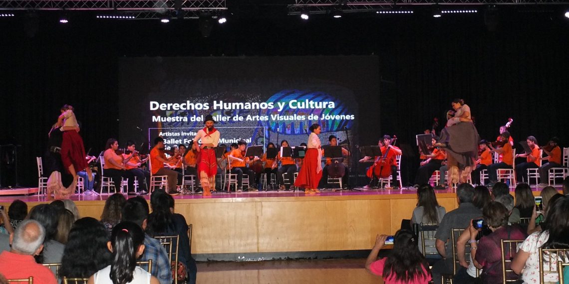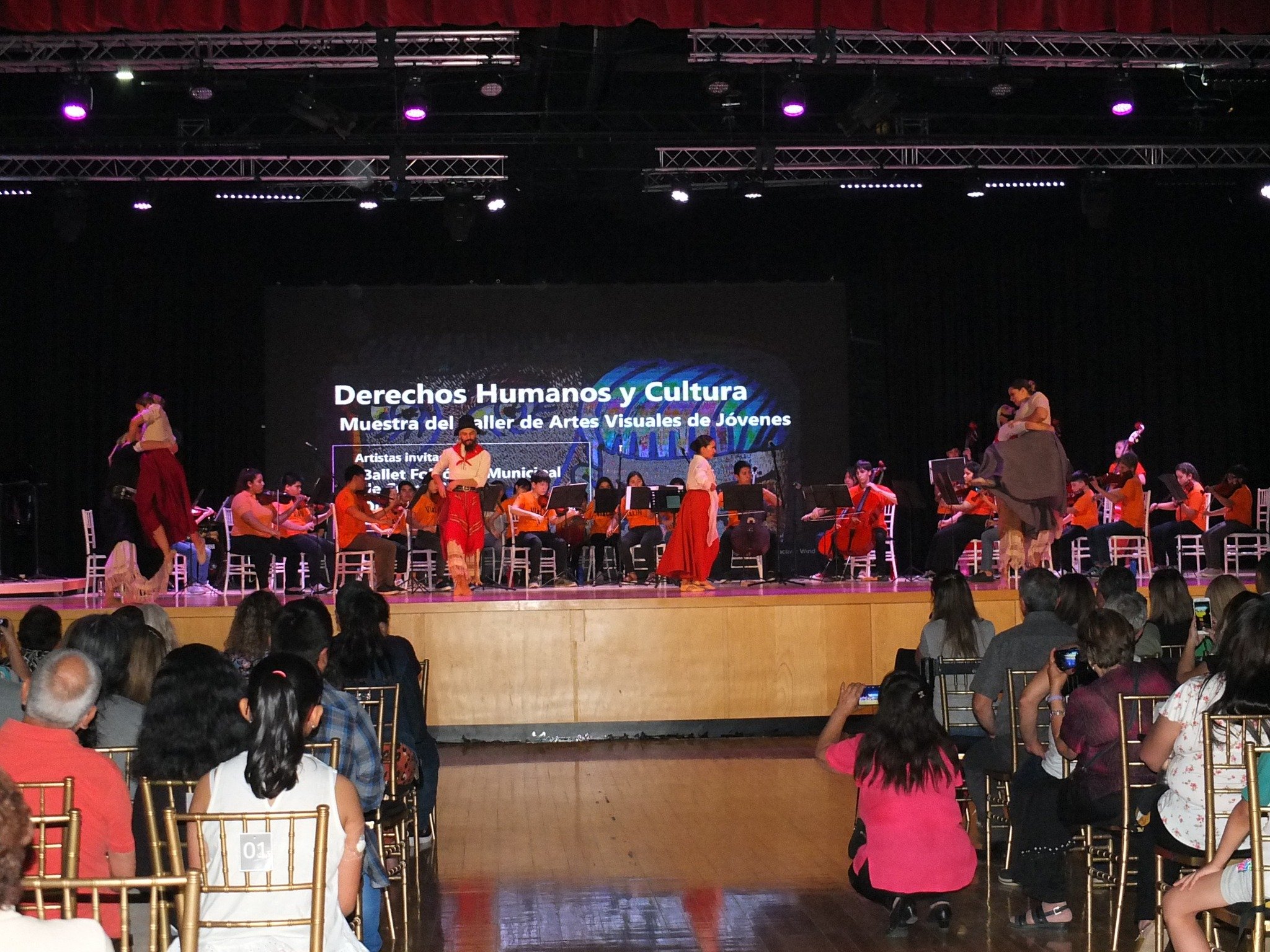 La muestra del Taller de Artes Visuales de Jóvenes se hizo con el Ballet Folklórico Municipal de Cutral Co, la Orquesta Infanto Juvenil de Cuerdas y el Ensamble de percusión del Colegio Tecnológico de la UTN.