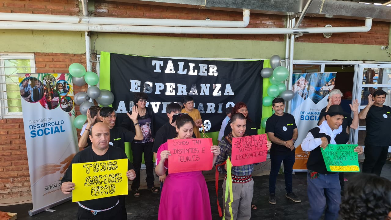 El acto por un nuevo aniversario del taller laboral Esperanza que contiene a personas con discapacidad tuvo hoy además de baile y una canción en lengua de Señas, el anuncio del intendente José Rioseco que volverán a producir a pleno para el año 2023. Además, si están todos en condiciones de salud podrán viajar en la colonia de vacaciones, que había antes de la pandemia de coronavirus, a Las Grutas.