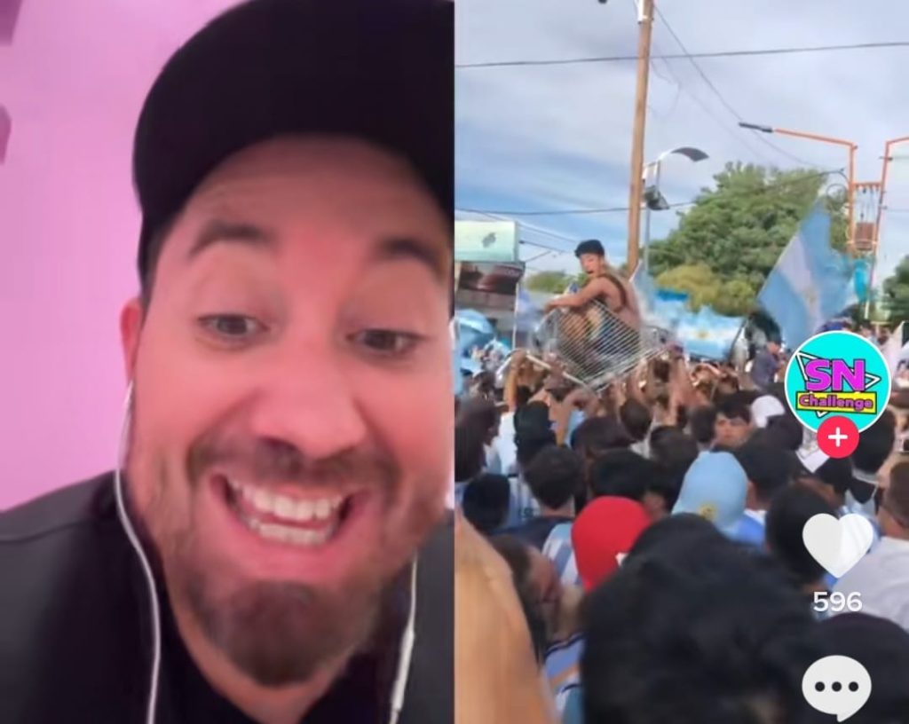 Sebas, uno de los integrantes del canal, vio el video y se sorprendió al ver este raro festejó que terminó con el joven, que estaba adentro del changuito, en el suelo provocando la risa de los fanáticos que estaban en el monolito de Carlos. H Rodríguez. “¿Qué hace ese pibe en un carrito de la compra?” se pregunta Sebas sorprendido.