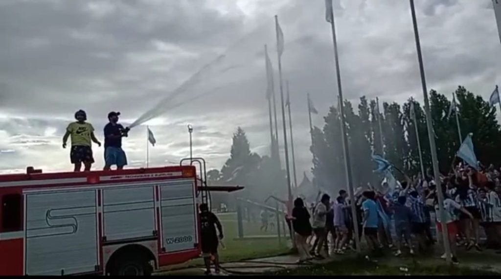 Un gran número de hinchas se acercaron a la Plaza de las Banderas de la ciudad de Plaza Huincul para continuar con los festejos por el campeonato Mundial de Argentina.