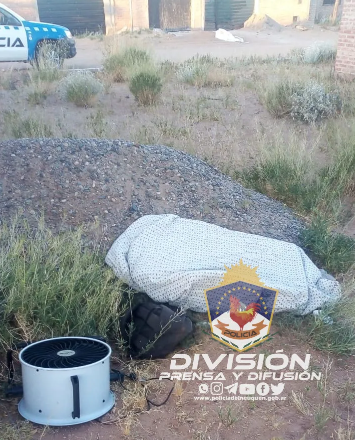 Una vez que da aviso a la policía, personal del Comando Radioeléctrico Cutral Co y Plaza Huincul comenzó a patrullar la zona cuando dieron con un terreno baldío con varios elementos elementos escondidos.