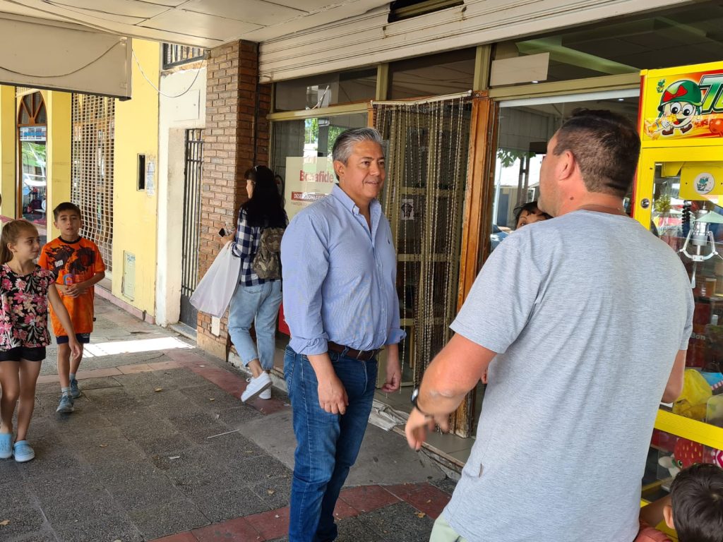 El candidato a gobernador Rolando Figueroa aprovechó el martes soleado para pasear por la calle Roca y charlar con personas que lo conocían y se acercaban.