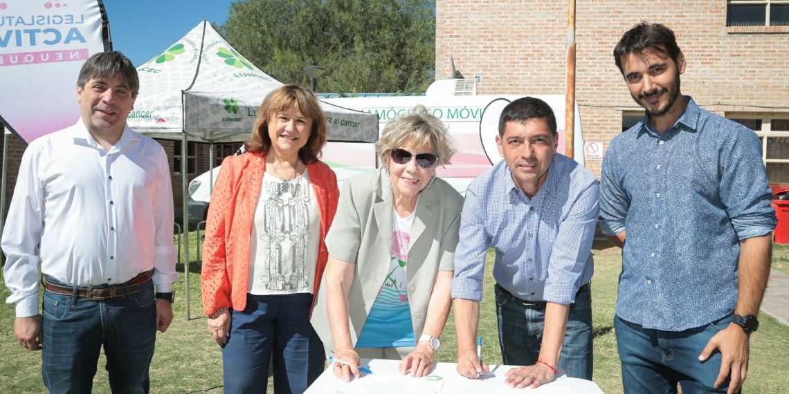 El vicegobernador Marcos Koopmann firmó hoy con la presidenta de la Asociación Civil Lucha Neuquina Contra el Cáncer (LUNCEC), Nora Serrano de Salvatori, un convenio para continuar durante este año con el trabajo en conjunto de concientización, prevención, testeo y diagnóstico precoz de enfermedades oncológicas que viene realizando la asociación en conjunto con la Legislatura, a través del funcionamiento del mamógrafo móvil.