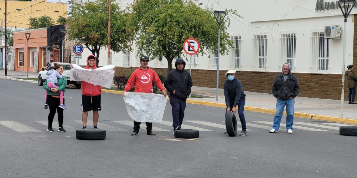 Según dijeron son de un sector del barrio Progreso, en la manzana 4, de la calle San José y Juan Dota. La protesta es porque el agua que llega no tiene la presión suficiente como para subir a los tanques domiciliarios.