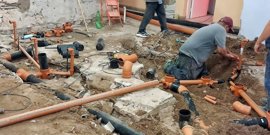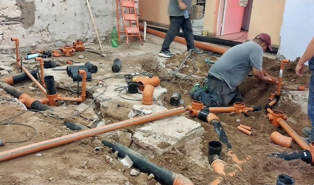 En la escuela primaria Nº 176 de Challacó se lleva adelante una obra orientada a la renovación del sistema de red cloacal.