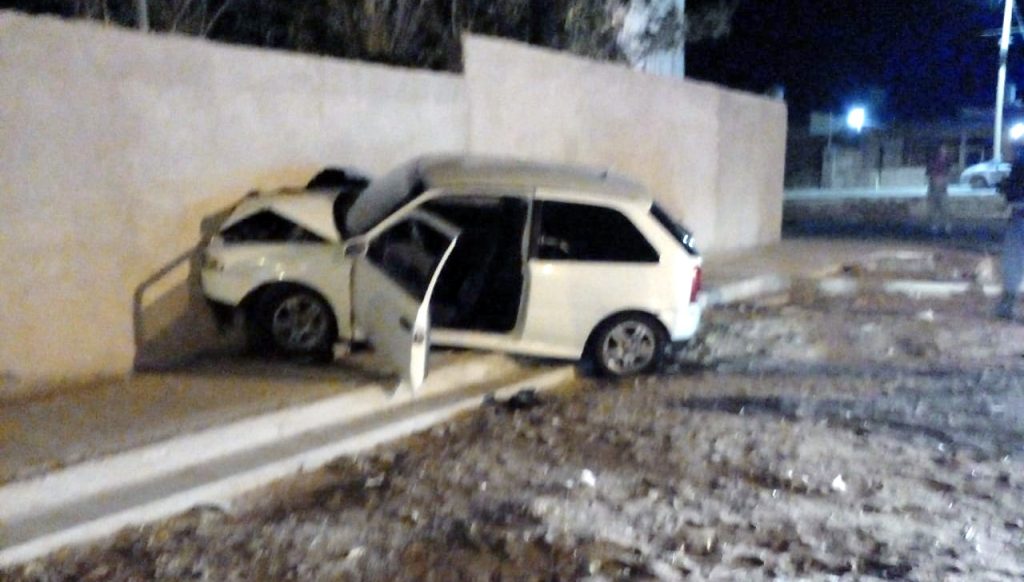 El conductor o conductora de un vehículo VW Gol impactó contra el paredón de un complejo de canchas de fútbol.