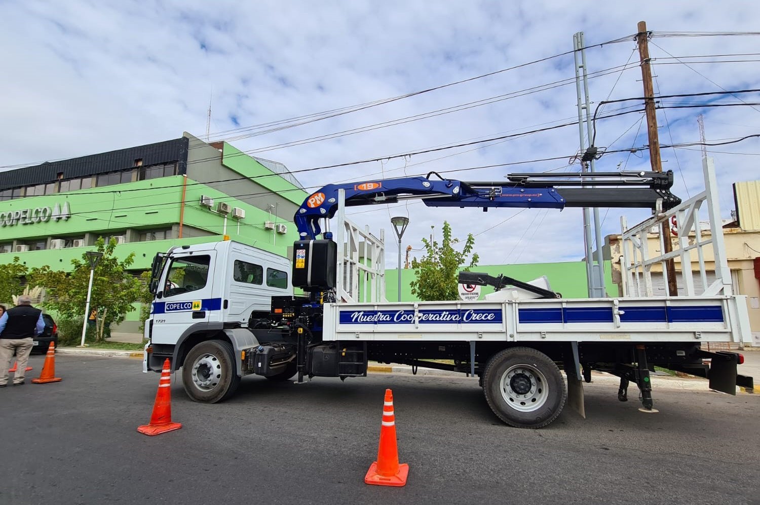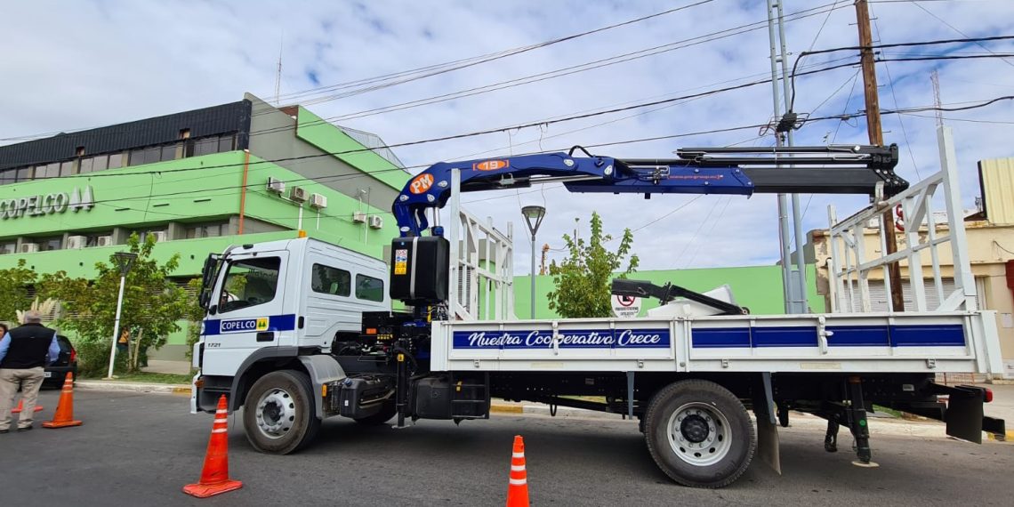 Hoy, la cooperativa Copelco presentó una unidad que cuenta con una hidrogrúa. El camión 0 kilómetro que ya tenía la institución es Mercedez Benz y se le incorporó el equipo que permitirá realizar todas las prestaciones que el servicio requiere.