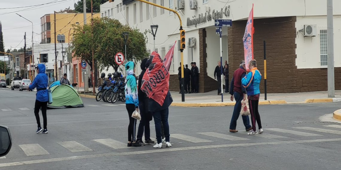 Dos organizaciones sociales estuvieron esta mañana con una protesta frente al edificio municipal cutralquense, en Elordi y avenida del Trabajo.
