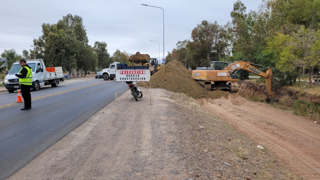 El movimiento de suelo genera que el tránsito por la ruta 22 sea complicada por momentos, hay personal de defensa civil para ordenar el tránsito mientras están los camiones y las máquinas movimiento el suelo.