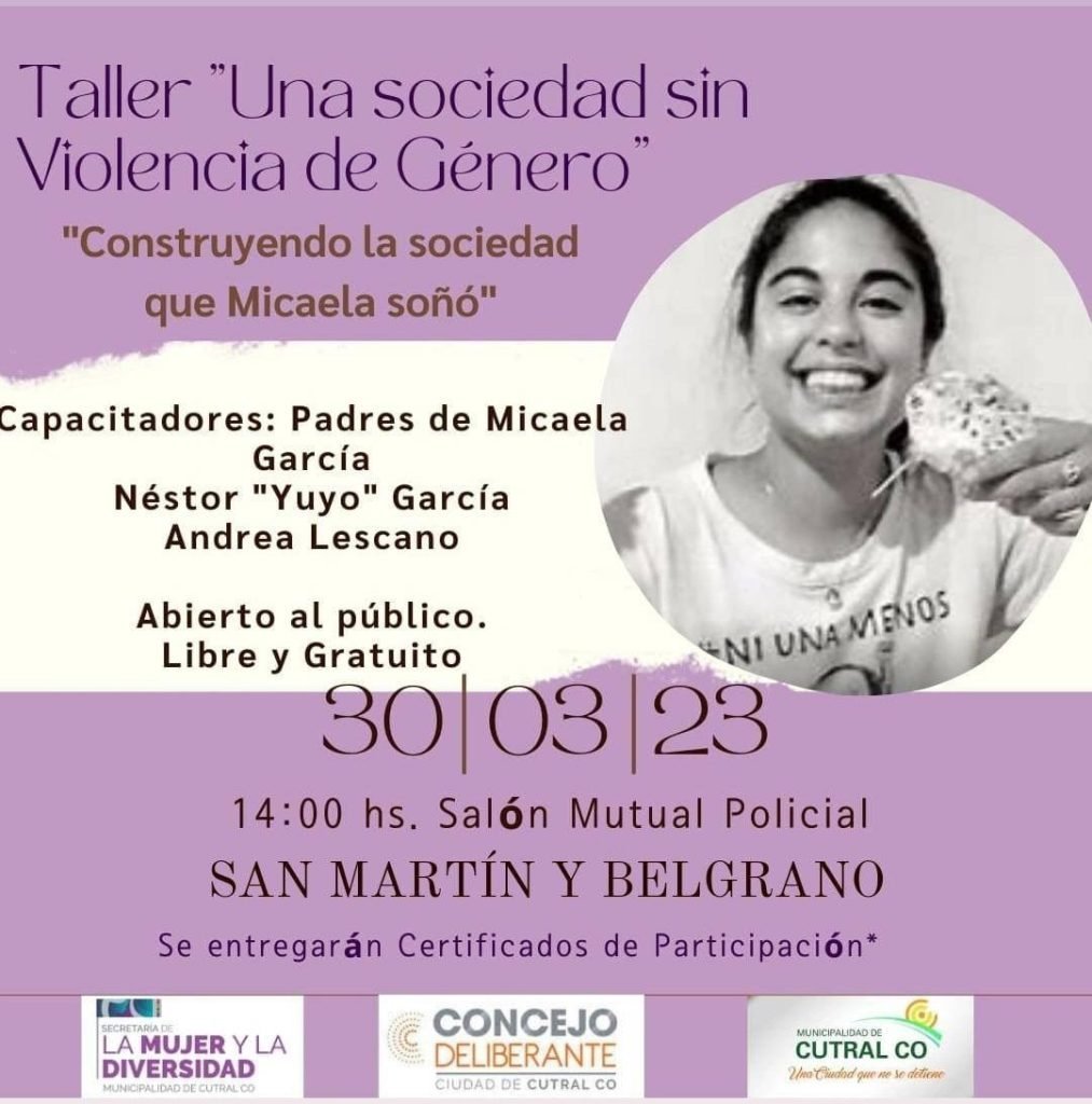 La actividad estará a cargo de Andrea Lescano y Néstor “Yuyo” García, los padres de Micaela. Es abierto al público y con entrada libre y gratuita.