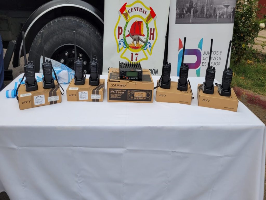 Esta mañana se hizo la presentación del equipamiento de comunicación que aportó la comuna huinculense a la Central N° 17 del cuartel de bomberos voluntarios.