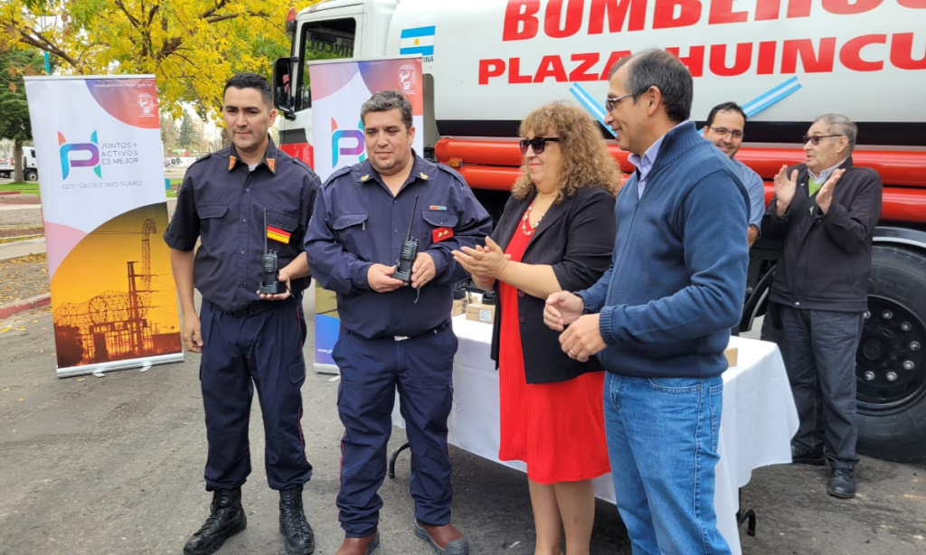 Se entregaron ocho handy y una central. Además, se presentó el camión cisterna o aguatero que ya había sido adquirido con anterioridad con el aporte que hizo el gobierno provincial.