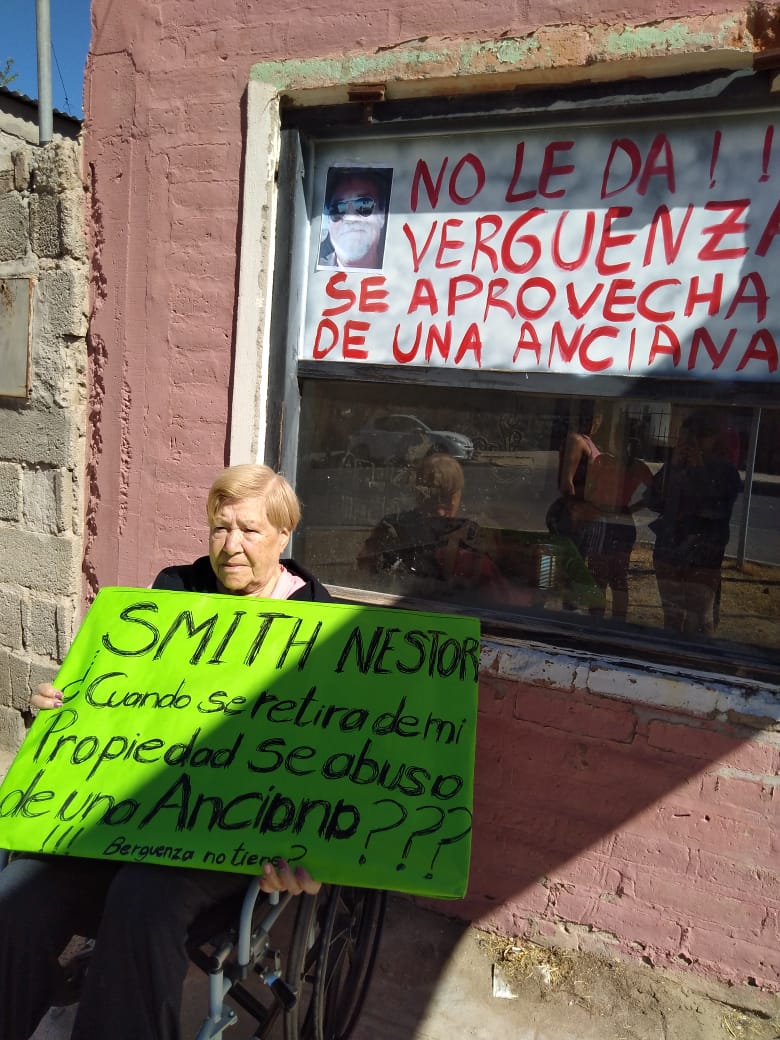 “No quiso renovar el contrato, y nunca abrió el local y no quiere salir”, explicó una sobrina. La vecina quedó viuda y desde ese momento el inquilino se negó a retirarse. La familia de doña Ángela indicó que desde esta mañana, ella permanece sentada en su silla de ruedas, afuera del local con carteles.