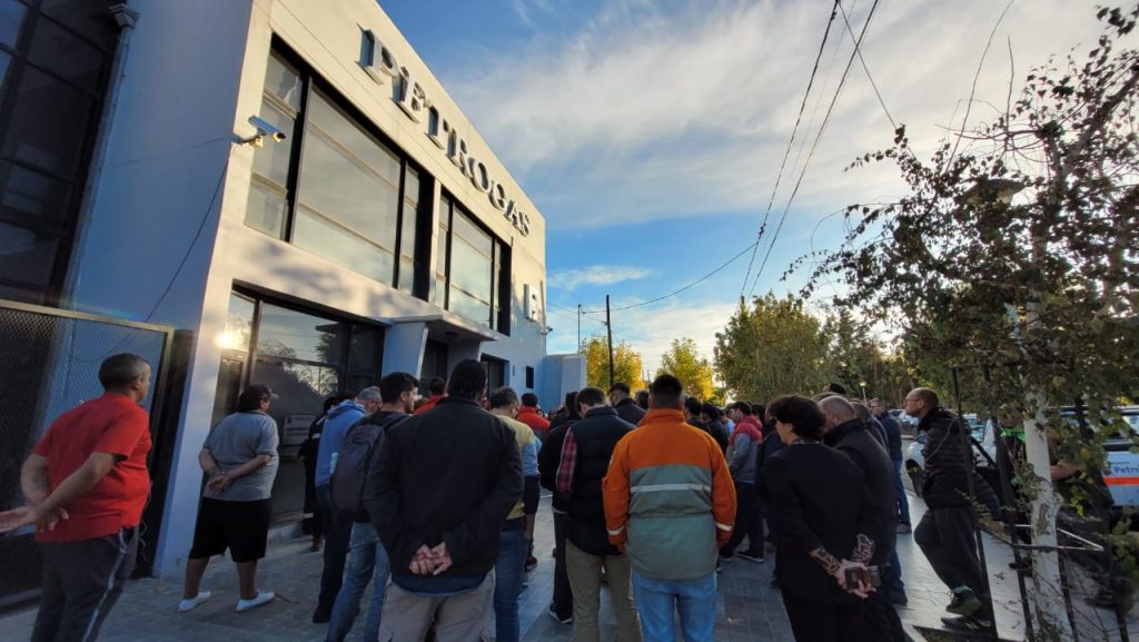 Esta tarde, un grupo de trabajadores de la empresa Petrogas se dirigió a la sede central en el barrio Ruca Quimey para que los responsables de la comisión directiva les respondieran algunas de las inquietudes sobre el futuro laboral.