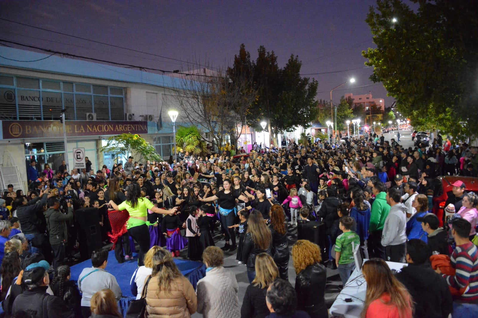 La tarde otoñal del sábado fue distinta en el centro comercial de la ciudad: la calle se volvió peatonal entre la Avenida Carlos H. Rodríguez y Tucumán, para recibir a todos los que quisieron moverse, guiados por los profesores de las distintas academias de baile.