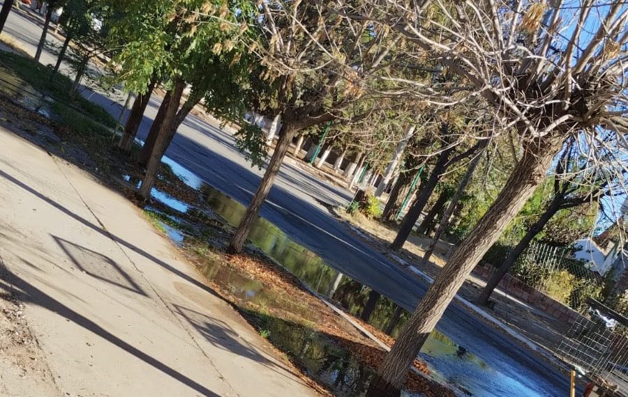 La pérdida de agua se registra en la calle Juan Marín del barrio Central, en Plaza Huincul. Las familias del sector indican que la rotura está desde el sábado último.