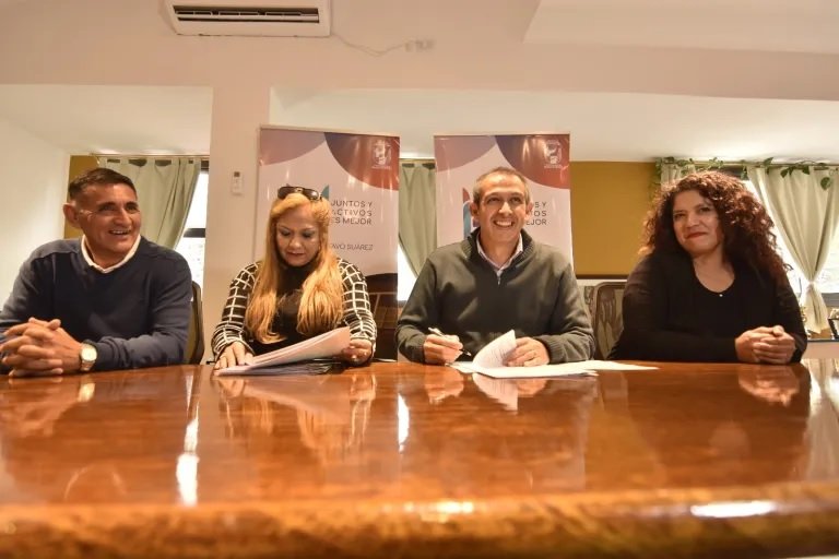 El convenio con los titulares de las seis cooperativas que se encargarán de levantar el plan de 123 Viviendas en el barrio Otaño fue firmado por el intendente Gustavo Suárez.