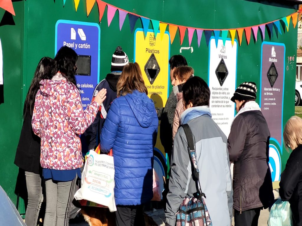 En esta oportunidad el frío se hizo sentir, pero la jornada soleada y apacible acompañó a quienes llegaron con plásticos, metales, cartón, papel, y vidrio para depositar en los containers que sirven como punto de acopio de residuos que pueden ser reciclados y reutilizados.