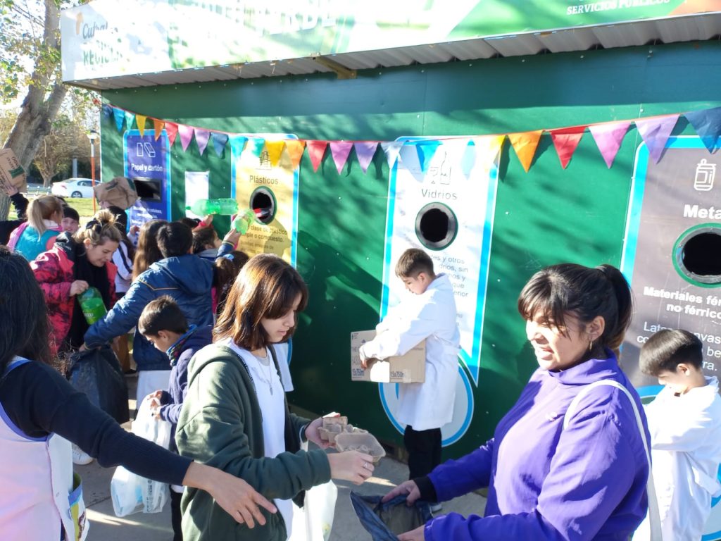 Alumnos de la escuela Nº 172 participaron de la actividad impulsada por la concejala Ely González, y como todos los vecinos grandes y pequeños que llegaron hasta los puntos verdes, se llevaron a cambio semillas, tierra fértil, lápices o lapiceras ecológicos y macetas compostables.