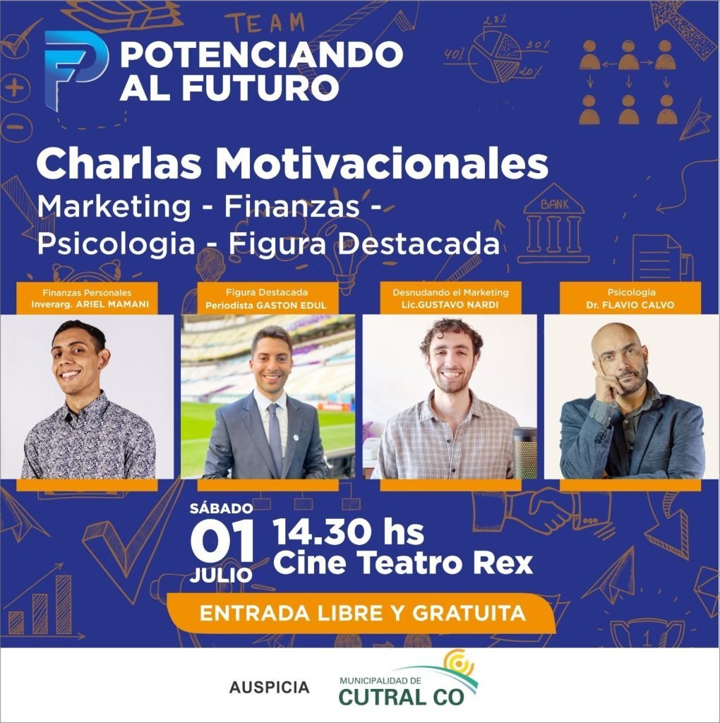 Una serie de charlas motivacionales se brindarán este sábado 1° de julio en la sala del cine Rex, con entrada libre y gratuita, a partir de las 14:30.