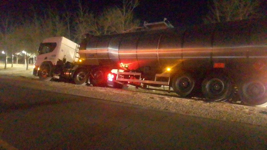 Esta noche, un camión cisterna de transporte de combustible quedó en riesgo de volcar al detenerse en la banquina de la Ruta 22 y sufrió una desestabilización. Esta noche, alrededor de las 21:30 concluyeron las maniobras y se informó que el vehículo estaba vacío.