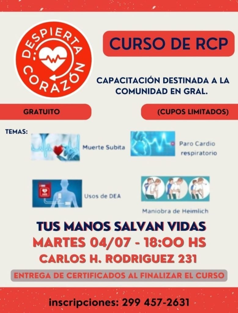 “Despierta Corazón”: habrá curso de RCP en Cutral Co