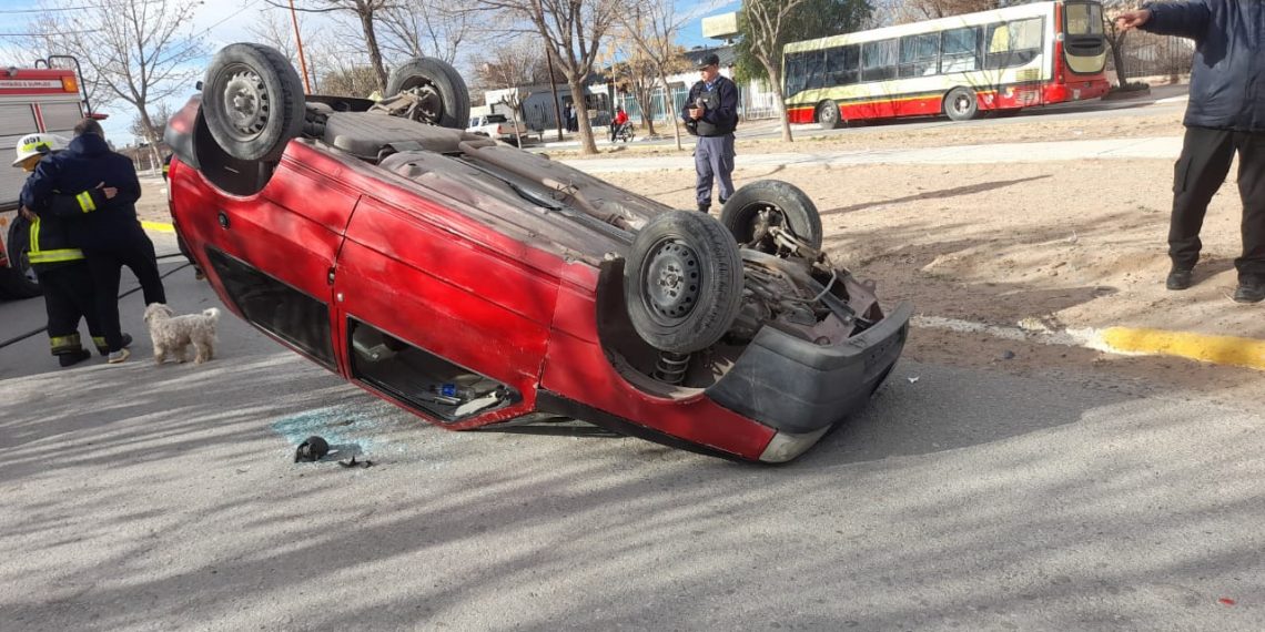 El incidente vial fue en avenida Castagnous y según se indicó se desplazaba en el sentido este – oeste cuando colisionó con la Duster y luego volcó. El vehículo se encontraba estacionado sobre la vereda norte y según se indicó pertenece a una bombera del cuartel huinculense.