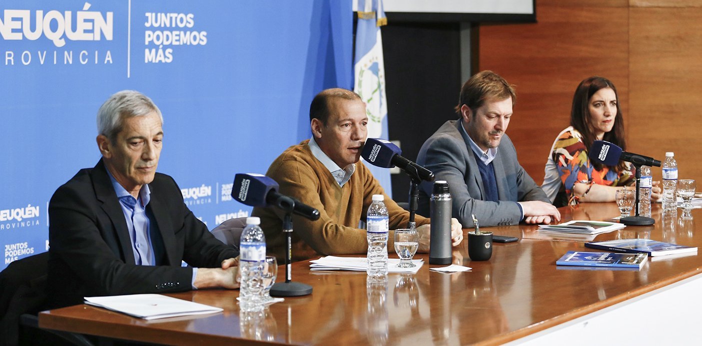 El anuncio fue realizado por el gobernador Omar Gutiérrez, en compañía de los ministros de Producción e Industria, Facundo López Raggi, y de Economía e Infraestructura, Guillermo Pons y la gerente del Centro Pyme-ADENEU Anabel Lucero Idizarri.