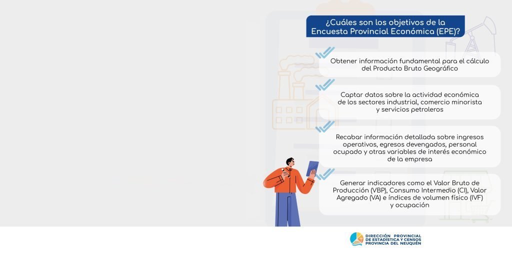 El relevamiento permite obtener información que servirá de base para elaborar indicadores tales como el Producto Bruto Geográfico (PBG), el Valor Agregado (VA) y el Consumo Intermedio (CI).